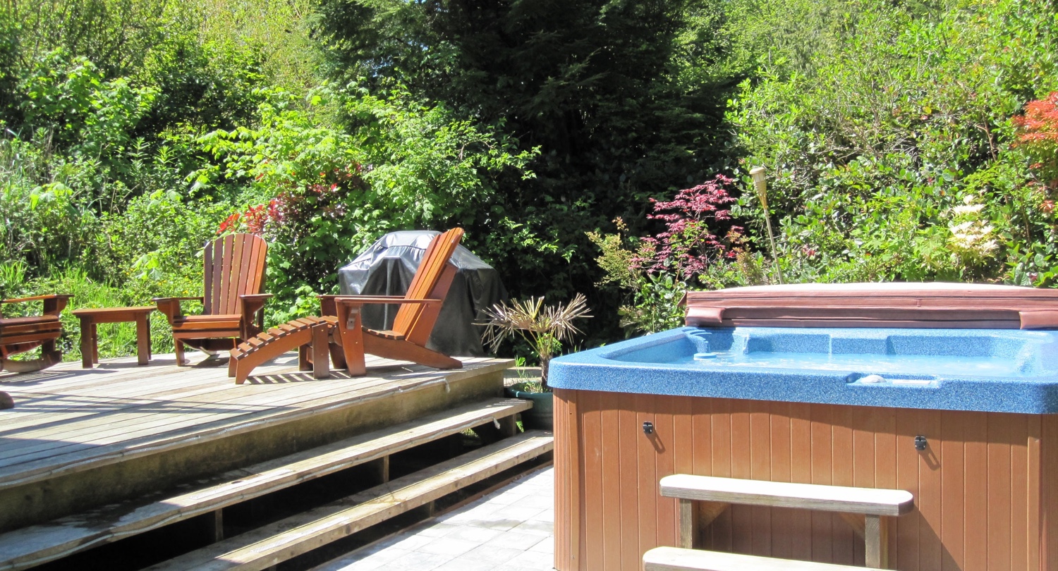 Relax in your own hot tub after a day at the beach. Tofino’s shops, cafés, and surf rentals are just a quick drive or scenic bike ride away.